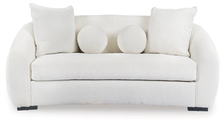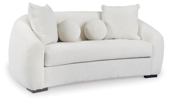 Luce un estilo único con este sofá de dos plazas curvilíneo tapizado en tela Nuvella™ beige crema, que combina sofisticación y practicidad. La tela de alto rendimiento ofrece una durabilidad excepcional y un fácil mantenimiento, mientras que su distintivo diseño curvo crea un atractivo punto focal. La combinación de respaldo firme y cojín de asiento suelto proporciona el equilibrio perfecto entre soporte y comodidad.